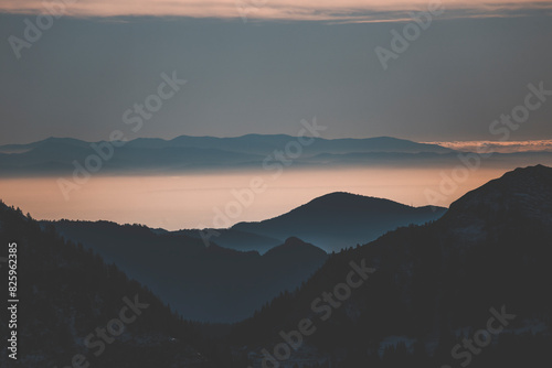 mountain, landscape, sunset, sky, nature, mountain, sunrise, fog, cloud, cloud, mist, morning, view, sun, hill, forest, blue, evening, vale, dawn, hill, peak, light, horizon, misty