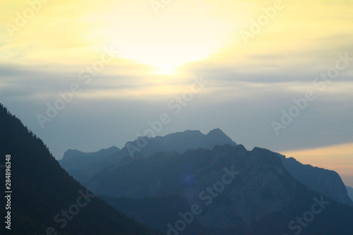 Sunset in the mountains near the Swiss village Aeschi, in the Bernese Highlands
