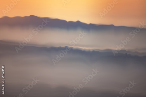 Sunset or sunrise above the mountains, nature landscape background, horizontal panorama of beautiful sunrise in the mountains.