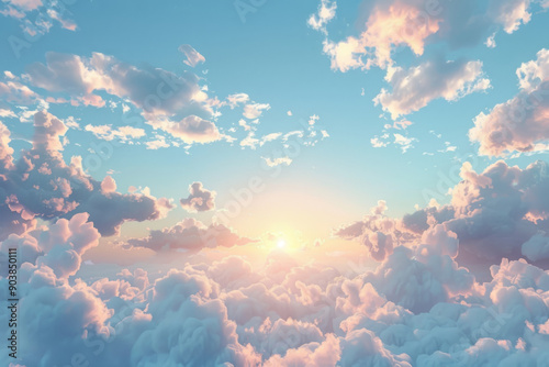 sky, cloud, sunset, sun, sunrise, horizon, evening, morning, light, blue, pink, white, fluffy, soft, dreamy, peaceful, serene, beautiful, nature, landscape, aerial, view, heaven, heavenly, atmospheric, gold, ray, glow, haze, softness, wispy, cumulus, stratus, weather, atmosphere, abstract, background