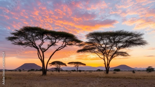 sunset, acacia, tree, landscape, africa, nature, sky, cloud, mountain, horizon, wilderness, scenic, beauty, calmness, evening, pink, orange, yellow, grass, silhouette, sunrise, wildlife, travel, adventure, safari, exploration, natural, daylight, environment, panorama, remote, peaceful, calm, vibrant, summer, warm, season, idylli, serenity, openness, distant, view, contrast, photo