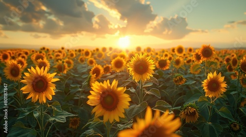 sunset, sunflower, field, vibrant, summer, landscape, gold, light, nature, agriculture, concept, mag, cover, environmental, campaign, poster, seasonal, flower, yellow, bloom, flower petals, farm, rural, beauty, scenic, outdoors, cultivation, crop, flora, growth, sunny, bright, warmth, sky, cloud, background, eco, gardening, harvest, sunlit, horizon, tranquil, peaceful, idylli