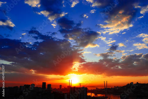 sunset, sky, cloud, sun, city, evening, sunrise, cloud, orange, nature, red, dusk, silhouette, landscape, night, dawn, blue, light, beautiful, urban, skyline, horizon, morning, colours, twilight