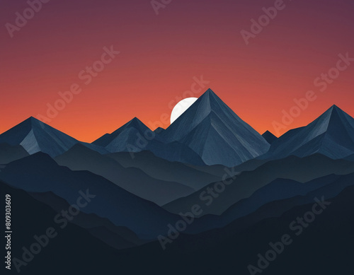 digital, art, artwork, illustration, mountain, landscape, nature, sunset, sky, mountain, sun, peak, mist, cloud, view, hill, cloud, range, vale, scenery, misty, dawn, silhouette, light, wallpaper, hill