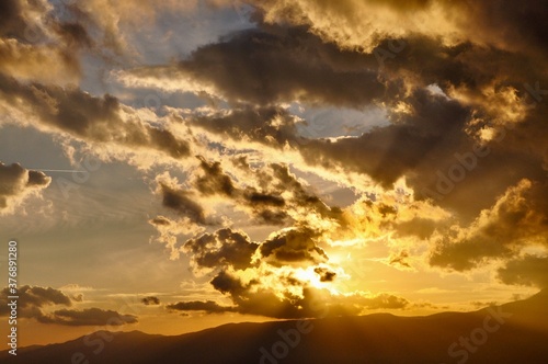 sunset over the mountains and Adriatic Sea