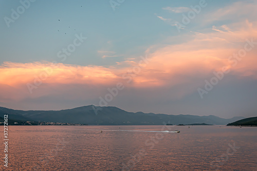 sunset, sea, landscape, nature, korcula, adriatic, balkans, croatia, abstract, beautiful, beauty, blue, cloud, coast, coastline, colours, dalmatia, dusk, europa, evening, horizon, island, light, mountain, orange, peaceful, red, scene, seascape, season, sky, summer, sun, sunlight, tide, travel, vacation, view, water, wave, wave, weather