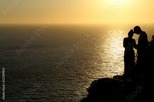 Sunset silhouettes during amazing golden sunset in Ibiza