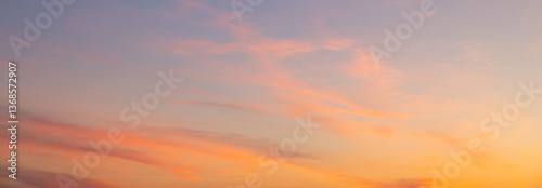 Sunset Sky Clouds in the evening with Red, Orange, Yellow and purple sunlight on Golden hour after sundown, Romantic sky in summer on Dusk Twilight