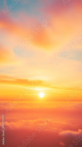 sunset, cloud, sky, background, orange, yellow, warm, vibrant, nature, landscape, cloudscape, sunrise, golden hour, atmospheric, serene, peaceful, tranquil, calming, majestic, beautiful, colourful, dramatic, breathtaking, heavenly, aethereal, dreamy, soft, light, glow, ray, sun, horizon, up high, view, vista, aerial, high altitude, flight, travel, exploration, wonder, beauty, photo, image, picture, graphic, design, element
