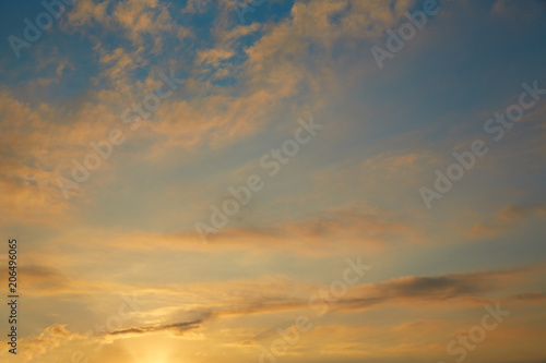 Sunset sky orange clouds on blue sky