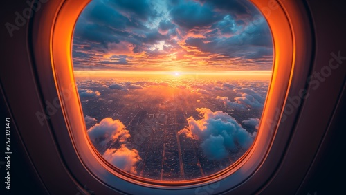 Sunset view through the plane window