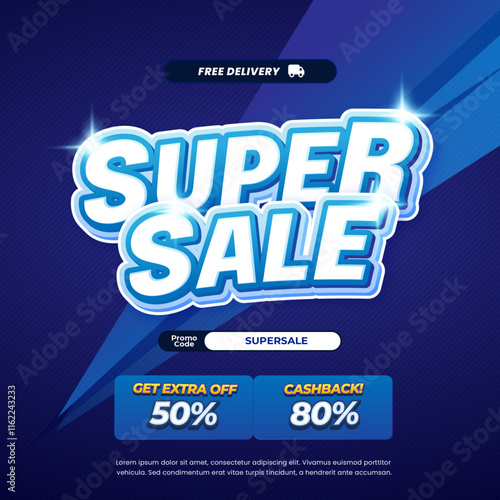 Super day Sale discount deals blue gradient Editable text effect Blue light simple premium background banner