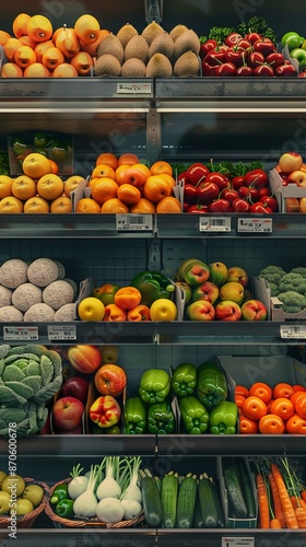 supermarket, shelf, fruit, vegetable, fresh, produce, grocery, store, colourful, healthy, eating, section, organic, food, market, retail, display, natural, shopping, nourishment, selection, buying, diet, green, orange, red, assortment, variety, freshness, aisle, culinary