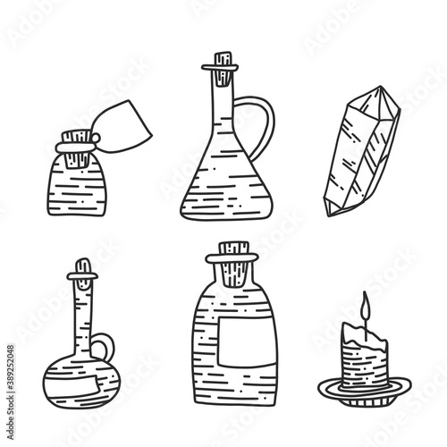 Supernatural magic collection of magical elements. Witch's things, vintage retro engraving style, vector graphics