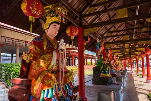 Suphan Buri, Thailand - October 27, 2019 : Buddha statue in Chinese shrine of the Chinese people in Suphanburi,Thailand