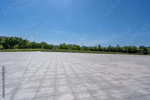 road, sky, grass, landscape, path, nature, green, field, tree, park, blue, summer, tree, way, wood, cloud, horizon, pavement, street, floor, country, asphalt, garden, brick