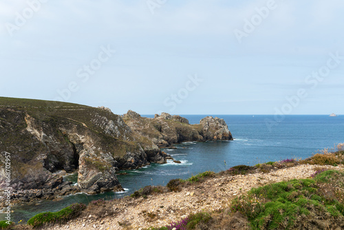 Sur la presqu'île de Crozon en Bretagne, la mer d'Iroise côtoie un majestueux massif rocheux, créant un cadre naturel époustouflant.