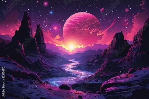 illustration, sky, science, futuristic, red, galaxy, background, mountain, alien, fantasy, planet, universe, mars, space, astronomy, cosmos, desert, exploration, horizon, horizontal, surface, moon, martian, sun, landscape, travel, earth, future, land, star, color image, outer space, sand, cartoon, rock, saturn, concept, design, orange, environment, atmosphere, cosmic, discovery, satellite, solar system