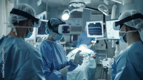 Surgeons in the operating room wearing virtual reality headsets.