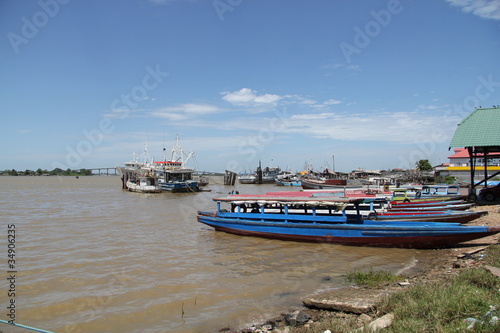 suriname, south america, amazonia, transport, boat, boat, river, water, brown, craft, blue, house, capital, city, architecture, tour tourism, heritage, forest, economy, fishing