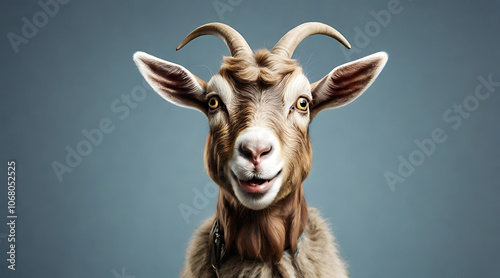 Surprised and Awkward Goat with Big Eyes and Open Mouth, Isolated on Plain Background for Humorous Appeal