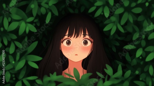 anime, girl, surprised, leafy, green, illustration, cartoon, character, nature, foliage, eye, face, expression, art, manga, cute, plant, vibrant, portrait, hair, high-coloured, design, youth, beauty, digital, graphic, innocence, emotion, colourful, background, whimsy, wonder, enchantment, peaceful, serene, landscape, fantasy, imaginative, fun, playful, creativity, visual, fresh, tranquil, artistic, style