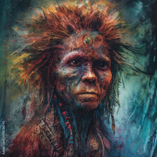 Surreal AI art portrays a transcendent figure, enveloped in vivid psychedelic hues, evoking a mystical, dreamlike dimension.