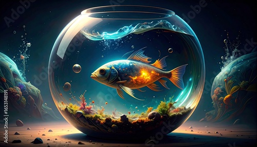 fishbowl, abstract, artwork, design, aquatic, earth, vibrant, surreal, water, fish, ocean, marin, life, underwater, fantasy, aquarium, creative, art, glasses, sphere, bubble, environment, dreamlike, artistic, tranquil, unique, serene, light, space, element, liquid, ecology, splash, habitat, flora, fauna, colourful, beauty, imagination, nature, clear, clean