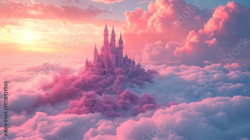 surreal, pink, castle, float, mid, air, flower, island, surround, shimmer, aethereal, tale, wonderland, pastel, aglow, illusion, fantasy, mesmerize, universe, elegance, magical, spectacle, structure, colourful, exotic, mystical, high-coloured, enchantment, celestial, ambience, charming, fairy, imagine, radiance, mirage, whimsical, radiant, vibrant, dreamy
