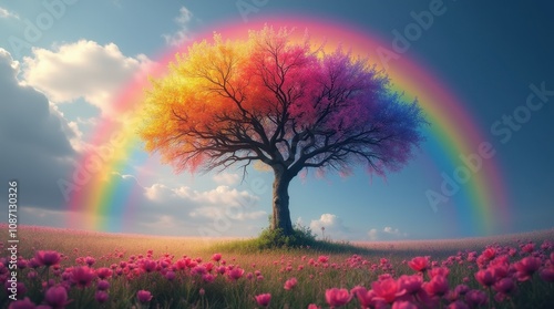 rainbow, surreal, tree, vibrant, nature, landscape, ground, germinating, branch, arc, fantasy, imagination, colourful, unique, photo, art, photo, surrealism, growth, unusual