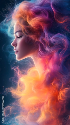 Surreal Woman with Colorful Hair – Fantasy Portrait Wallpaper