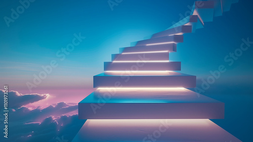 stage, staircase, success, three-dimensional, business, upward, heaven, light