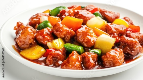 Sushi close-up, elegantly arranged on a minimalist plate with a focus on texture and color, set against a crisp white background, no people.