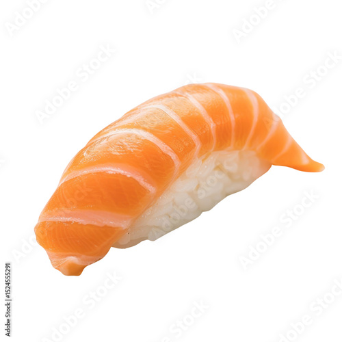 Sushi is popular Japanese dish featuring piece of salmon top of vinegared rice, showcasing vibrant colors and delicate texture. This dish is often enjoyed for its fresh taste and artistic