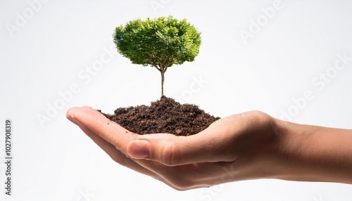 Sustainability and Growth. Symbolic Image of a Hand Nurturing a Tree with Soil, Representing Environmental Care, Conservation, and Future Eco Friendly Development