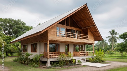 Sustainable Bamboo House Architecture in Tropical Landscape. Eco-Friendly Home Design.