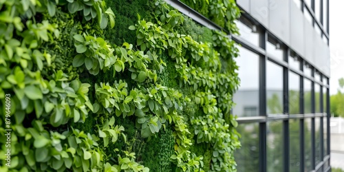 Sustainable Construction Featuring a Living Wall Highlighting Diverse Plant Varieties. Concept Sustainable Construction, Living Wall, Diverse Plants, Eco-Friendly Materials, Green Building