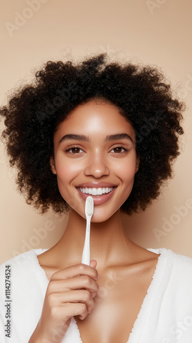 biodegradable, toothbrush, model, sustainable, smile, teeth, oral, care, hygiene, clean, health, wellness, beauty, natural, organic, green, recycling, environment, conscious, product, lifestyle, woman, afro, hair, happy, bright, dental, brushing, daily, routine, nature, fresh, hygienic, dental care, grooming, modern, portrait, minimalistic