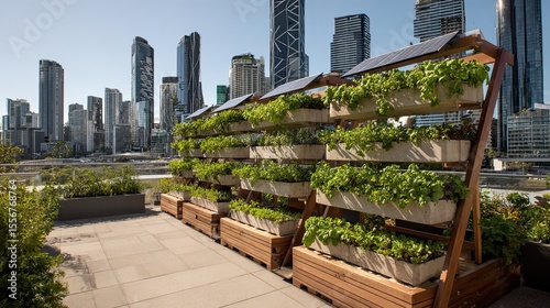 Sustainable Urban Farming with Solar Panels on Rooftop Garden