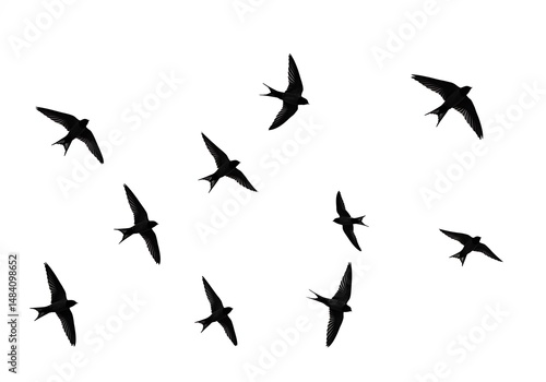 bird, bird, swallow, swallow, flock, flight, flying, avian, silhouette, black, white, background, nature, wildlife, wing, soaring, freedom, sky, movement, pattern