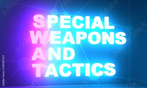 SWAT - Special weapons and tactics acronym. 3D rendering. Neon bulb illumination
