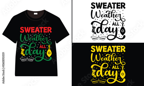 Sweater Weather All Day T-shirt design, Christmas day typography t-shirt design, Christmas typography vector t-shirt design
