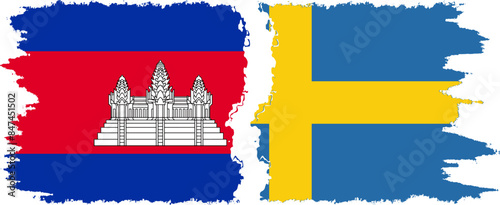 Sweden and Cambodia grunge flags connection vector