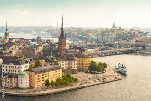 sweden, stockholm, aerial, isle, travel, journey, outdoors, day, architecture, exterior, bird, eye, scandinavia, city, old, town, lakeshore, waterside, national, landmark, church, building, tower, nobody, order, bridge, island, historical, history, bay, water