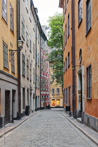 no people, vertical, outdoors, day, building exterior, street, calmness, travel destination, capital city, sweden, stockholm, architecture, house, tree, history, cobbled