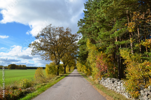 autumn, road, landscape, transportation, scenery, forest, environment, drive, asphalt, background, blue, bright, cloud, colourful, country, countryside, driving, empty, fall, field, green, natural, nature, perspective, pine, roadside, rural, scenic, sky, stone wall, travel, tree, view, white, yellow