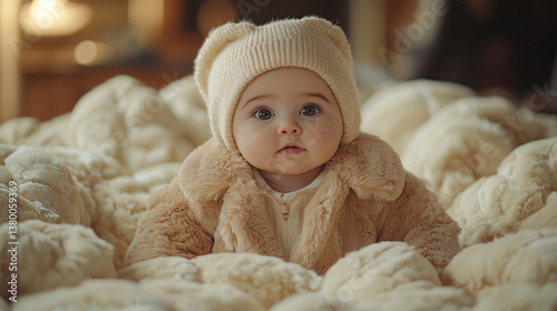baby, children, newborn, children, childhood, infant, boy, adorable, hat, face, winter, sweet, toddler, beauty, little, people, cute, fun, person, soft, smiling, fur, 1, lying, toy