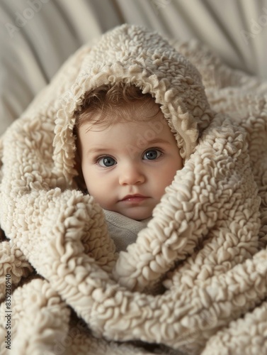 Sweet Baby Wrapped in Cozy Blanket - Copy Space Above with Soft Natural Lighting