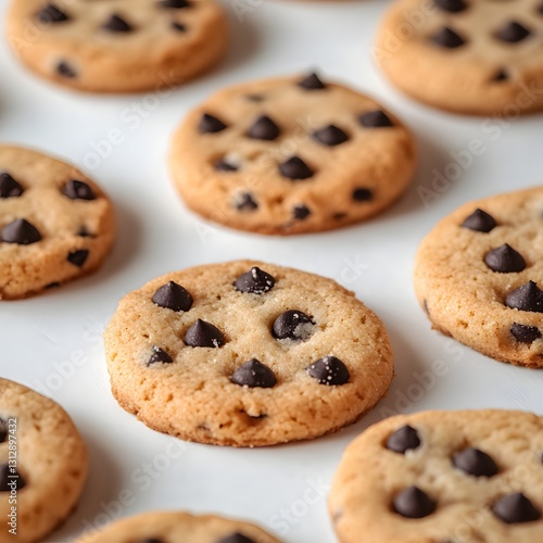 Sweet Chocolate Chip Cookies: A close-up shot of delicious, freshly baked chocolate chip cookies, arranged in a delightful pattern, evoking feelings of warmth and comfort.