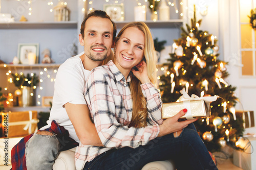 couple, opening, sitting, room, living, christmas, happy, home, people, love, christmas, gift, celebration, holiday, man, present, woman, family, surprise, beautiful, caucasian, happiness, hat, human relationships, smile, white, new, together, 2, year, portrait, smiling, winter, shopping, female, fashion, husband, lover, beauty, friends, festive, warm, tenderness, red, tree, evening, party, interior